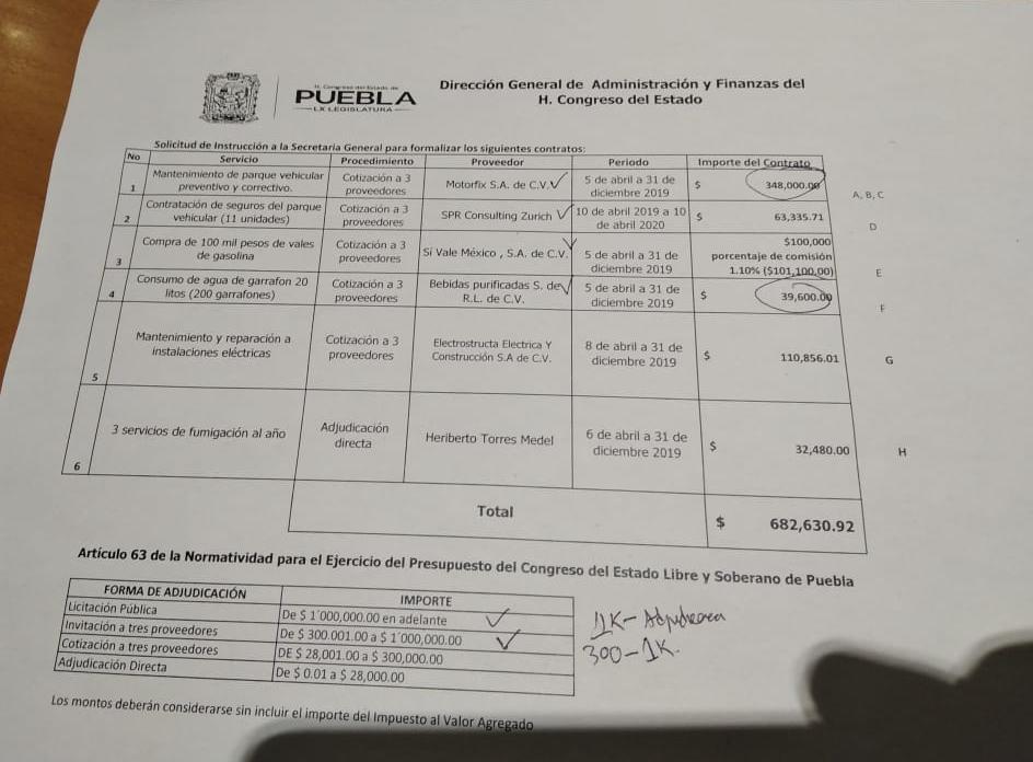 En el caso de la compra de 100 mil pesos en vales de gasolina que serán para uso del parque vehicular, de acuerdo a lo aprobado por los legisladores, se palomeó a Sí Vale México, S.A de C. V. hasta el 31 de diciembre este año.