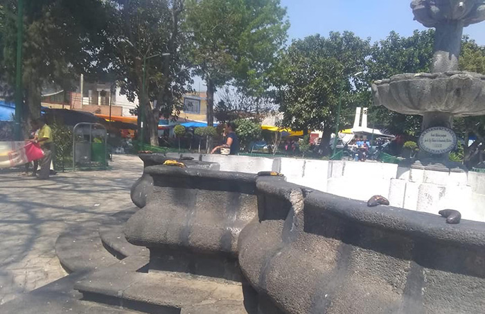 Atlixco, Pue. Por segunda vez en menos de 30 días, tianguistas locales retaron a la autoridad y a los vecinos de la colonia Álvaro Obregón, sede de ese mercado, al colocar basura en los alrededores de la fuente de La Rotonda como una muestra de reproche al ordenamiento comercial en la zona.