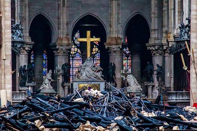 Un policía judicial francés comentó que los investigadores hicieron una evaluación inicial de la catedral el miércoles, pero que no habían recibido luz verde para registrar el calcinado interior de Notre Dame debido a los actuales peligros de seguridad.