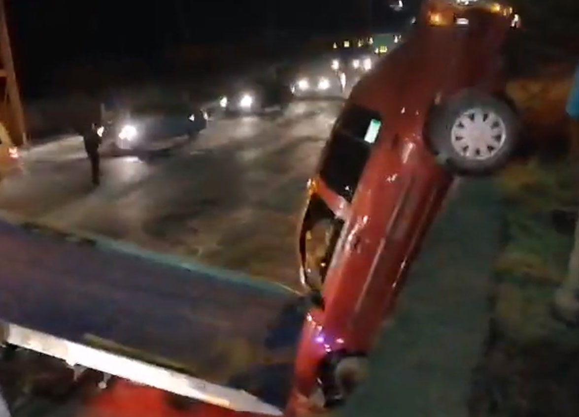 Literalmente un conductor ebrio dejó verticalmente su auto en la calle lateral al Eje Poniente