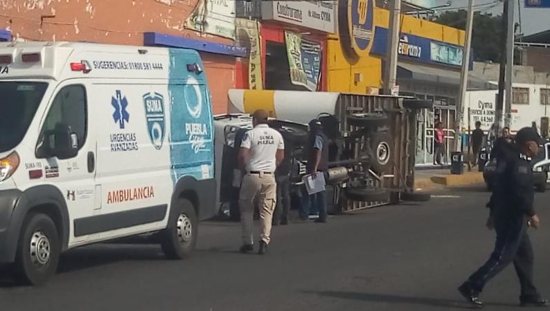 Remolque de Coppel se voltea en bulevar de Atlixco