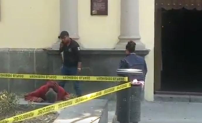 Indigente murió arrodillado frente a iglesia en Centro de Puebla