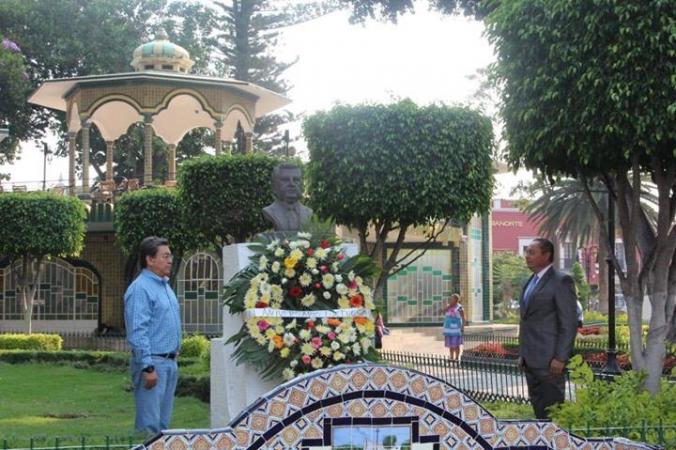 El primer acto fue la colocación de una ofrenda floral frente al busto del escritor de origen libanés para escuchar el relato de Cecilia Cabrera, una de las mujeres cronistas de Atlixco.