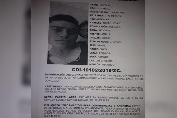 En caso de tener cualquier información sobre su paradero, favor de dar aviso a las autoridades o comunicarse al 2221430173.