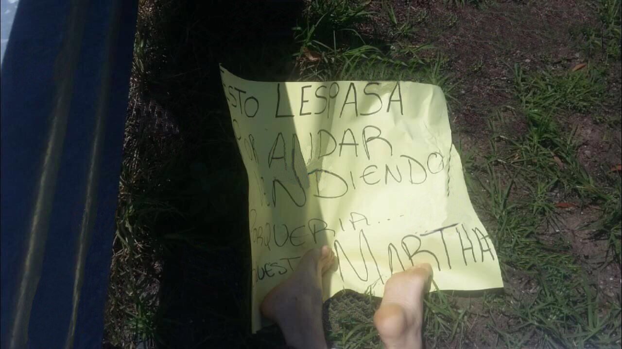 Junto al cuerpo dejaron una cartulina con el siguiente mensaje: “Esto les pasa por andar vendiendo porquería… sigues tú Martha”.