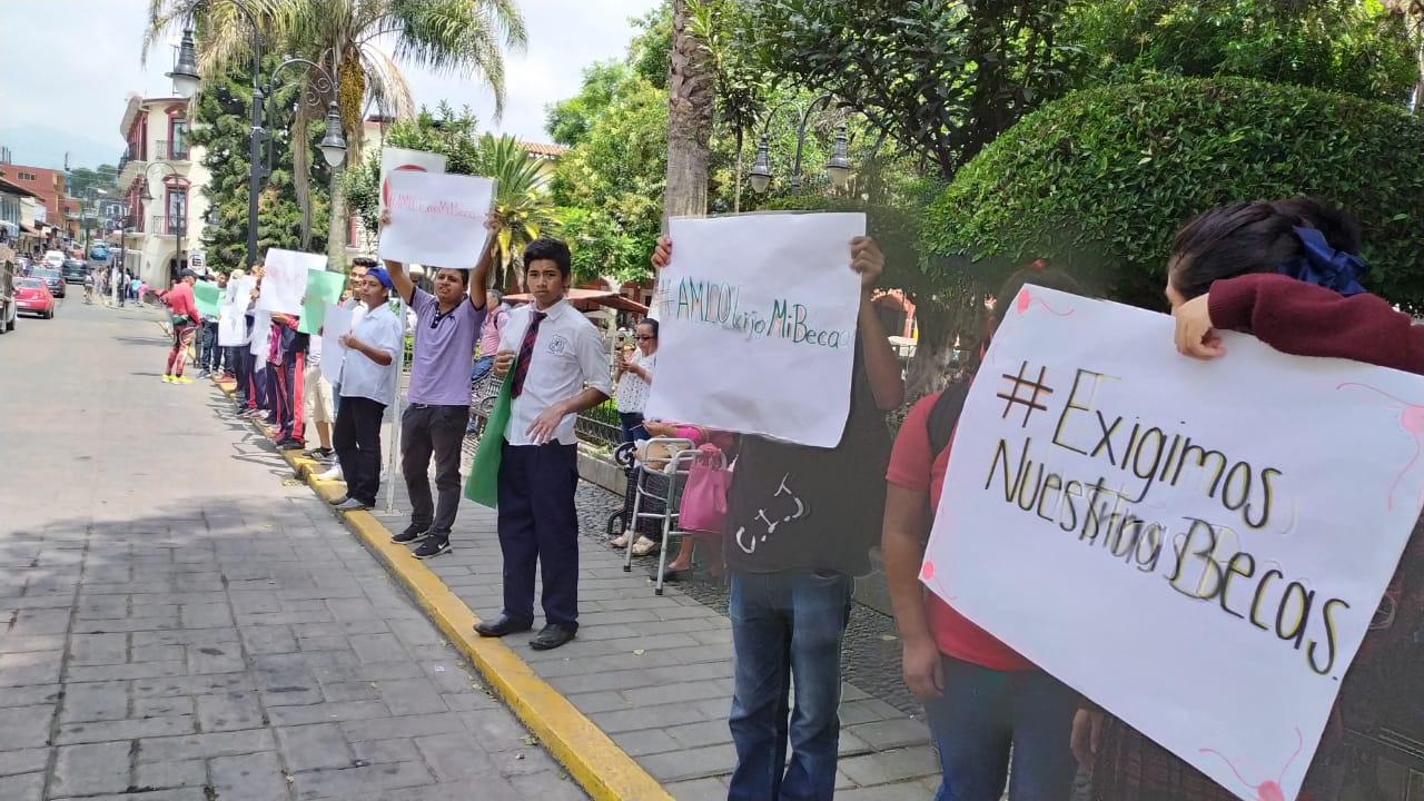 Algunos alumnos de bachillerato que se manifestaron exigiendo su beca, pertenecen a escuelas que funcionan con claves que no corresponden, por lo que su situación sería irregular y por ello a algunos no les han dado de alta para el beneficio.
