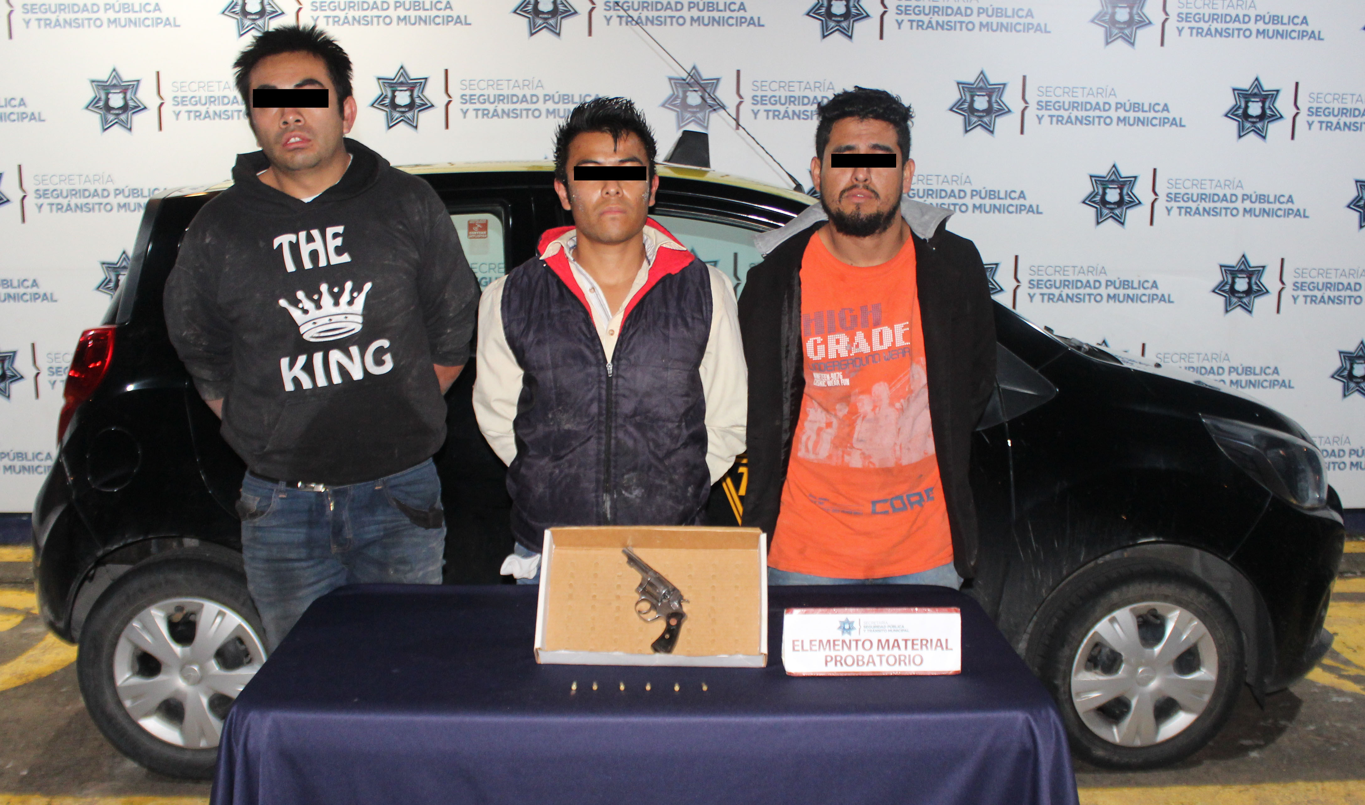 Puebla, Pue.- La Secretaría de Seguridad Pública y Tránsito Municipal (SSPTM) de Puebla detuvo en la colonia Jardín a Antonio “N.”, de 30 años de edad, Juan José “N.”, de 29 años de edad y Mauricio “N.”, de 22 años de edad, por su probable participación en hechos con apariencia de delito de portación de arma de fuego sin la licencia correspondiente.