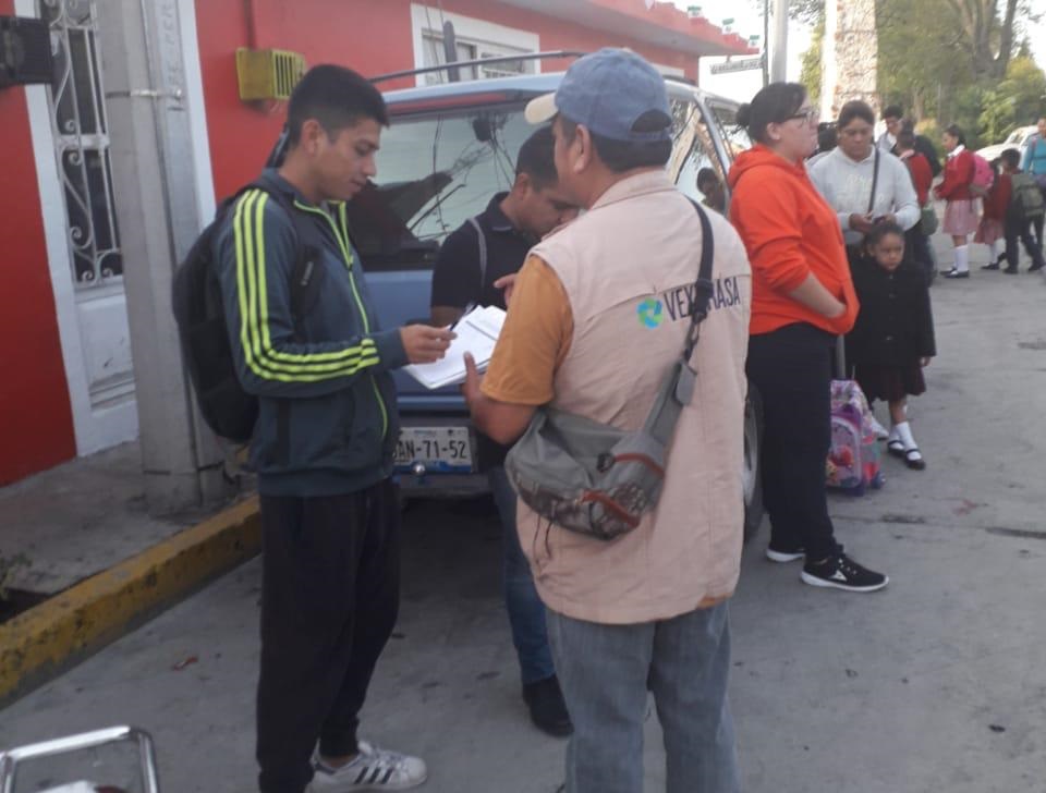 Poco antes de las 8 de la mañana, un hombre con el chaleco de una consultora intentó abordar a un grupo de padres de familia que acudían a llevar a sus hijos.