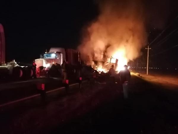 Oriental, Pue.- Un fuerte accidente en la carretera federal Amozoc-Teziutlán a la altura del tramo El Carmen Tequexquitla-Zacatepec se presentó la madrugada del viernes, donde un tráiler impactó contra un camión que se incendió al momento, dejando como saldo una persona calcinada.