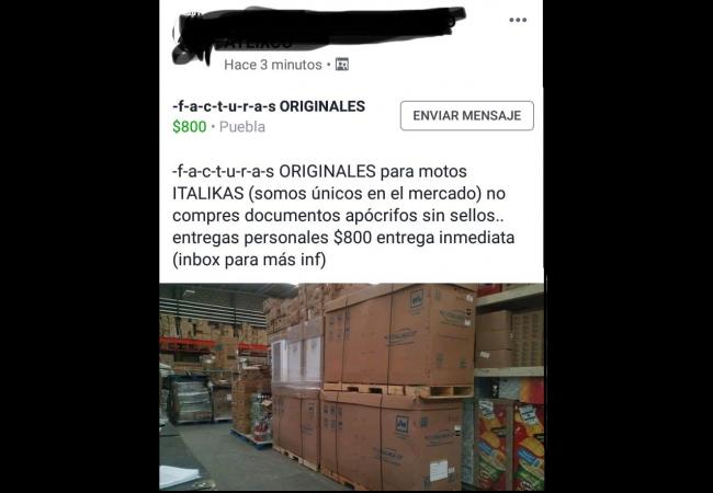 “Originales para motos Italikas. Somos únicos en el mercado. No compres documentos apócrifos sin sellos. Entrega personal e inmediata. Manda un mensaje”, asume la publicación hecha este miércoles en uno de los grupos locales de Facebook de mayor número de integrantes.