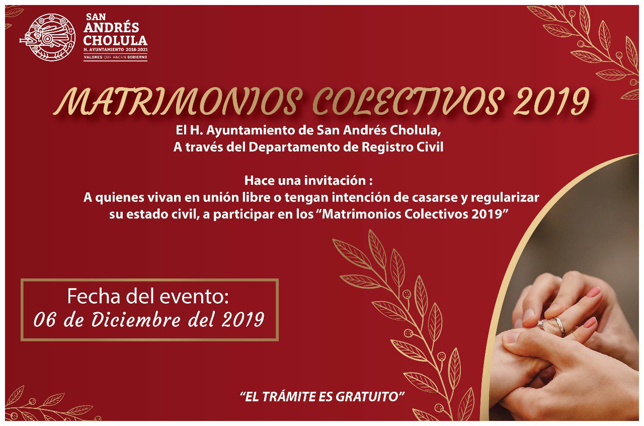 San Andrés Cholula, Pue.- El ayuntamiento que encabeza la alcaldesa Karina Pérez Popoca invita a todos los sanadreseños que tengan pensado casarse hacerlo por medio de los Matrimonios Colectivos 2019.