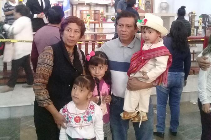 La familia Orea Ortega visita a la Virgen de Guadalupe en el templo de La Villita, acuden a dar gracias por el trabajo y las bendiciones que les ha brindado todo el año.