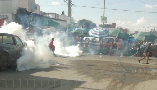 Aunque la mayoría logró recoger su mercancía y trasladarla a bordo de camionetas, otros se quedaron lanzando piedras y golpes contra la policía, que recurrió al gas lacrimógeno para dispersarlos.