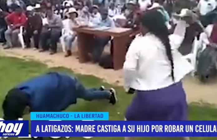 Recientemente se dio a conocer que, una mujer golpeó con un látigo, en varias ocasiones a su hijo frente a todos en su pueblo luego de fuera sorprendido robando un celular.