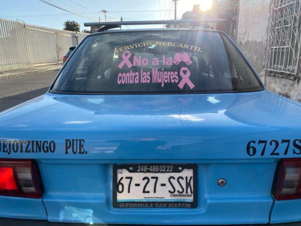 En el caso de los taxistas de Huejotzingo, colocaron moños rosas en los parabrisas y algunas leyendas para proteger y salvaguardar a mujeres y niñas, así lo señaló Gustavo Bracamontes conductor de una de las unidades.