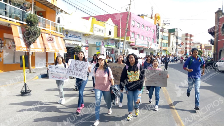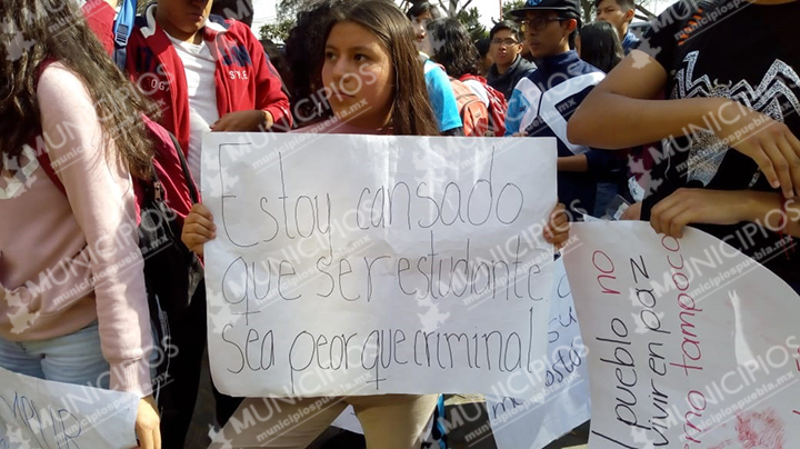 San Martín Texmelucan, Pue.- Alumnos de la preparatoria Emiliano Zapata perteneciente a la BUAP Texmelucan, marcharon este día por las calles del municipio para exigir mayor seguridad, denunciaron que al menos 30 de ellos y ellas han sido víctimas de asaltos y acoso en el trayecto a esta institución, amagan que de no atender sus demandas se irán a paro de actividades.
