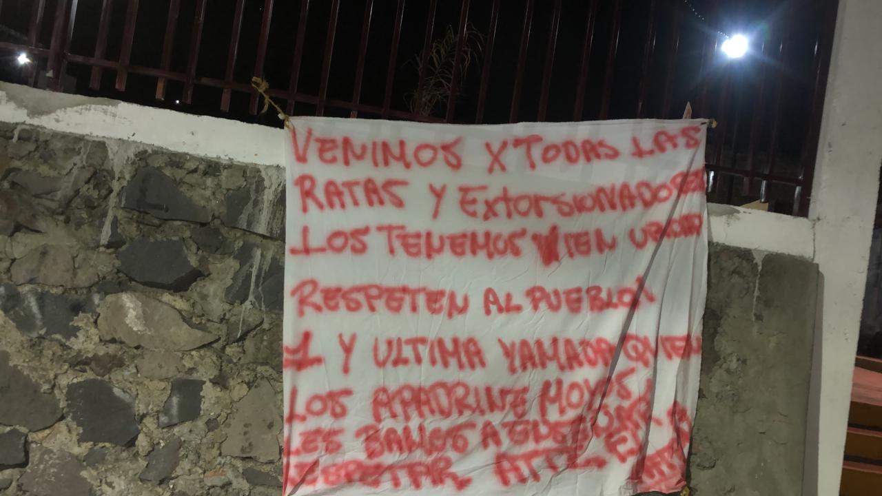 El Patrón, deja manta con mensaje amenazante en Texmelucan