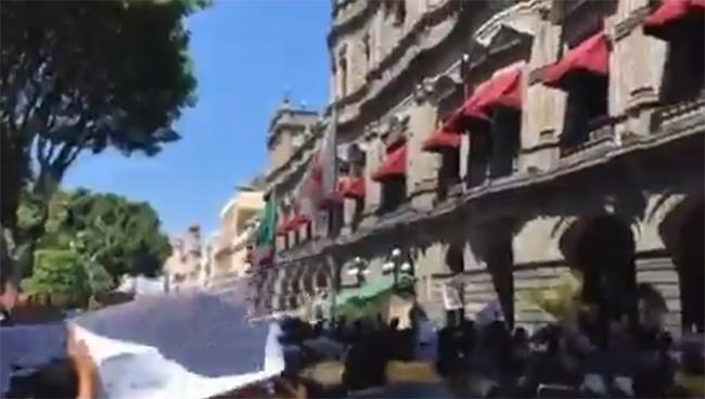 Estudiantes de la UTP y ITP se manifiestan en el zócalo de Puebla