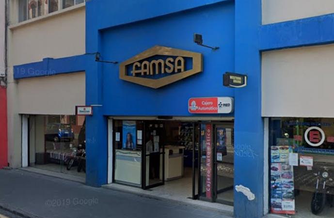 Puebla, Pue.- Esta tarde, a unas calles de donde se registró una marcha histórica por la seguridad por parte de miles de estudiantes, sujetos armados con marros rompieron vitrinas de la tienda Famsa de 2 poniente y 11 sur y se llevaron equipos celulares.