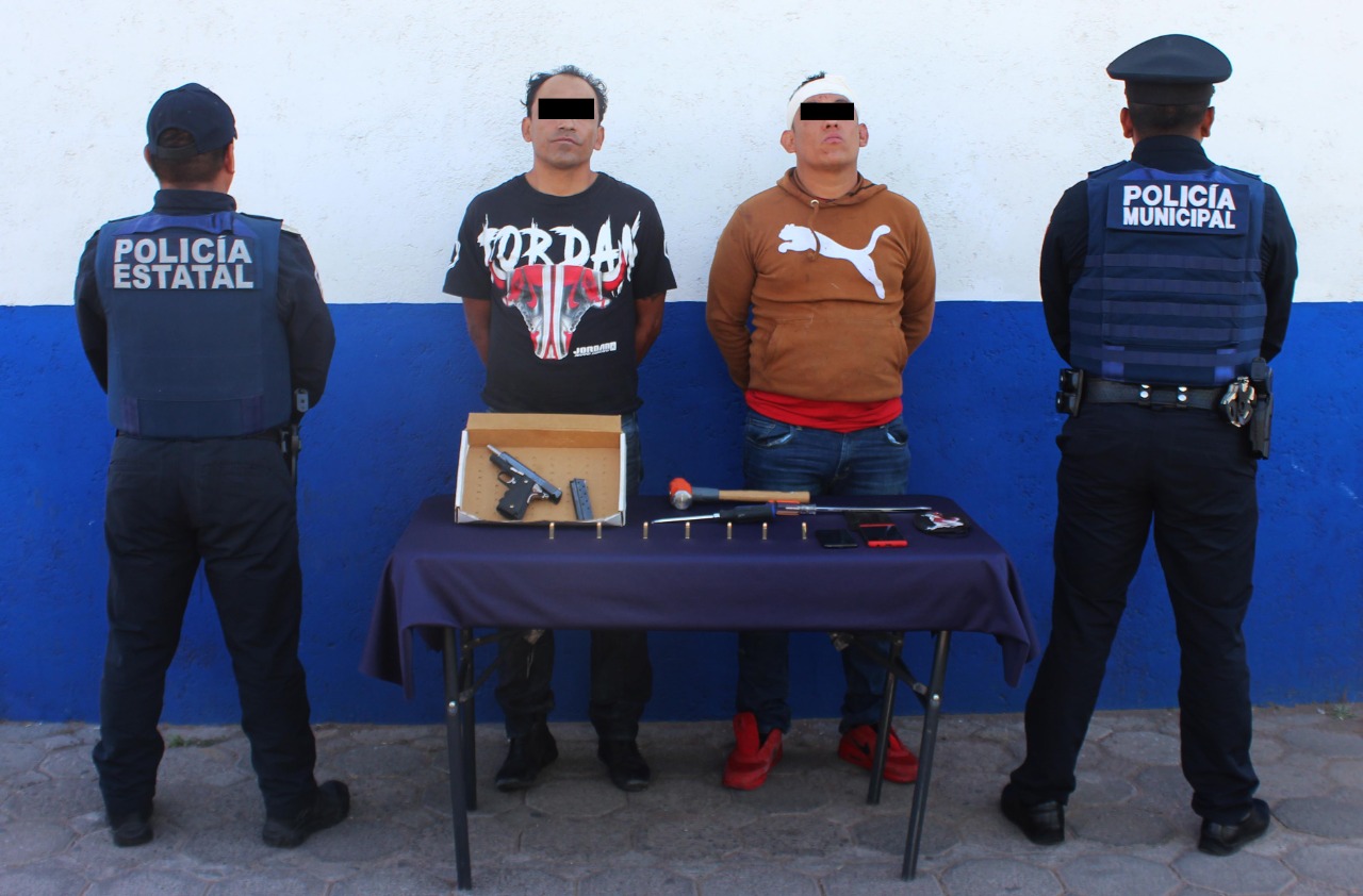 Puebla, Pue.- La Secretaría de Seguridad Pública (SSP) Estatal y la Secretaría de Seguridad Ciudadana (SSC) del Municipio de Puebla detuvieron en la colonia Benito Juárez a Rogelio “N.”, de 47 años de edad y José “N.”, de 37 años de edad, por su probable participación en hechos con apariencia de delito de robo a casa habitación.
