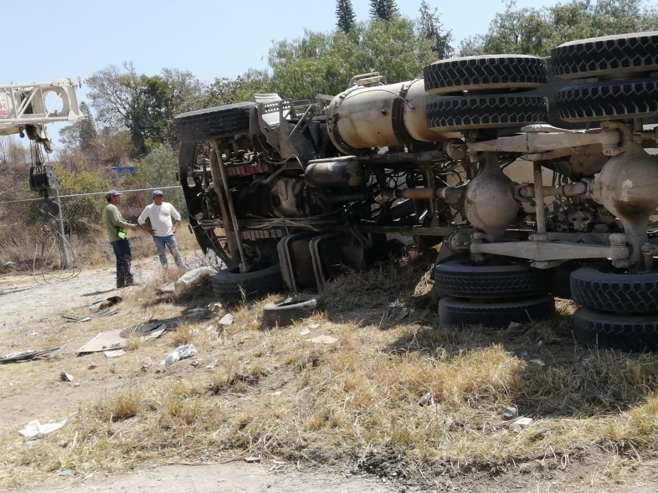 Atlixco, Pue. Este jueves un camión revolvedor quedó volteado sobre la carretera federal Atlixco- Puebla, a la altura del famoso puente de Los Molinos ocasionando una fuerte movilización de los cuerpos de seguridad y socorro.