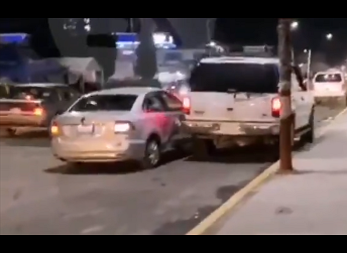En un video de apenas unos segundos, se observa cómo una camioneta circula a baja velocidad pero de forma errática en diferentes zonas de la ciudad pero constantemente golpea y causa daños en otros autos sobre la vía pública.