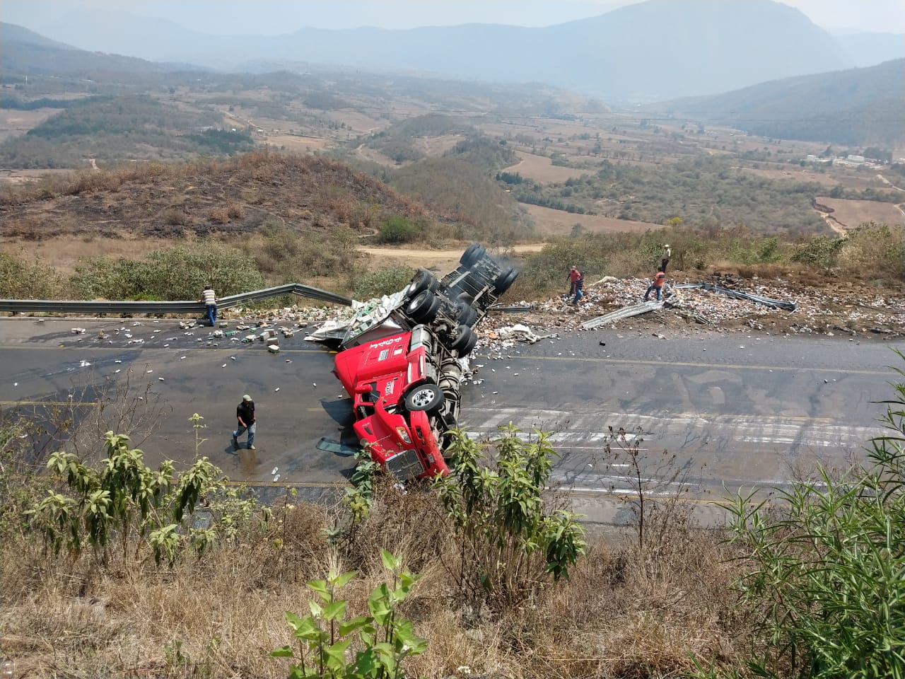 Un tráiler volcado bloqueó el paso a la altura del kilómetro 235+900 cerca de Maltrata.