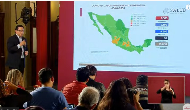 En conferencia de prensa desde Palacio Nacional, autoridades federales de salud pública dieron a concoer que al día de hoy ya son 1688 los mexicanos contagiados con el coronavirus.