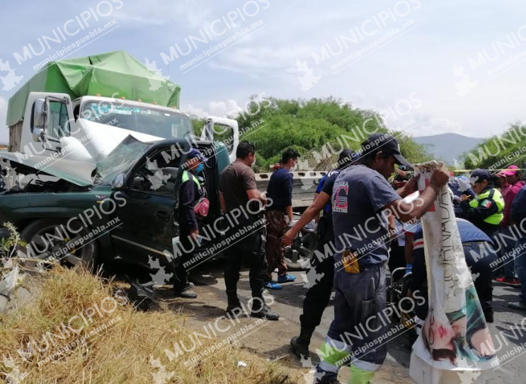 Un muerto y varios heridos deja choque de tráiler y pick up en Tecamachalco