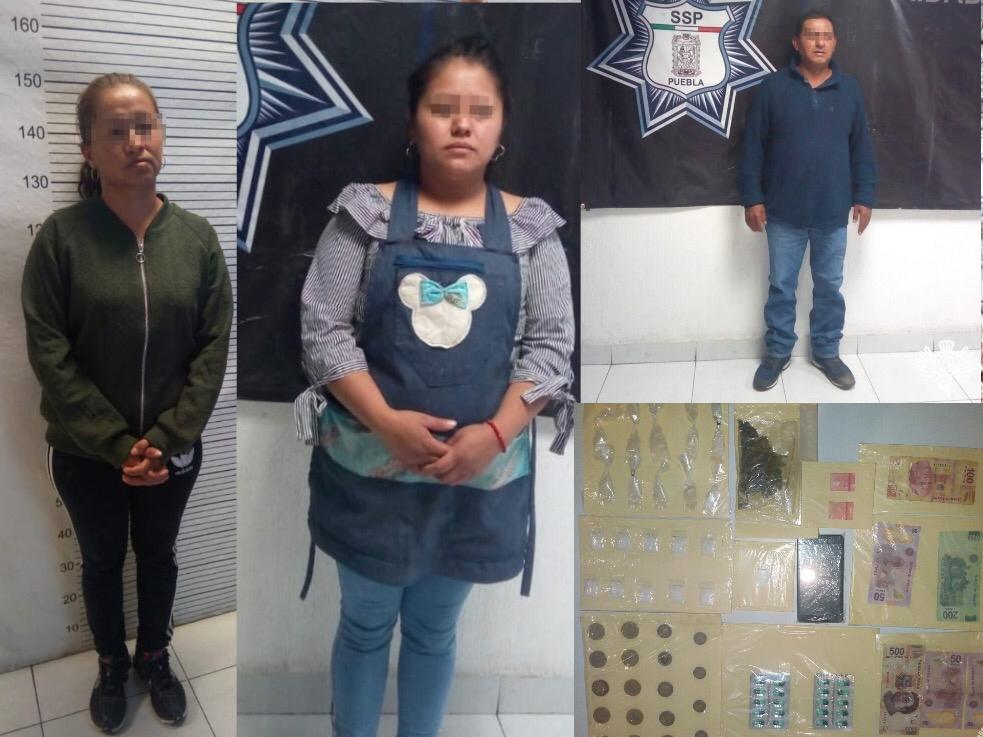 Puebla, Pue.-Agentes de la Secretaría de Seguridad Pública (SSP) detuvieron tres presuntos narcomenudistas en la carretera federal México–Puebla, a quienes se les encontraron sustancias con características propias de las drogas conocidas como cocaína, cristal y marihuana.