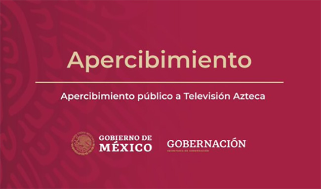 La Secretaría de Gobernación advirtió a la televisora TV Azteca para manifestar públicamente su respeto a las disposiciones sanitarias y se sume al frente común convocado por la Secretaría de Salud ante la emergencia derivada del Covid-19.