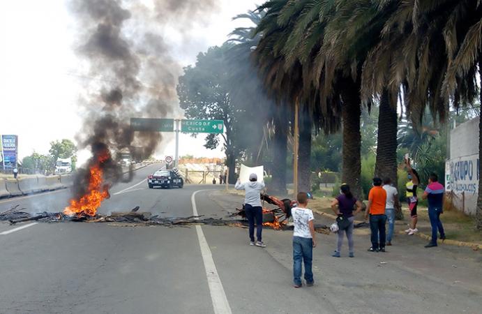San Martín Texmelucan, Pue.- Familiares de un joven quien perdió la vida por disparos de arma de fuego, cerraron los accesos a San Martín Texmelucan, para acusar a elementos de la policía estatal de haber sido los responsables de haberle dado muerte a este hombre, cuyo cuerpo quedó al fondo del río Atoyac.