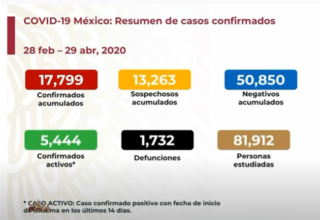 EN VIVO Hay 1732 muertos por coronavirus en México y 17799 casos positivos acumulados