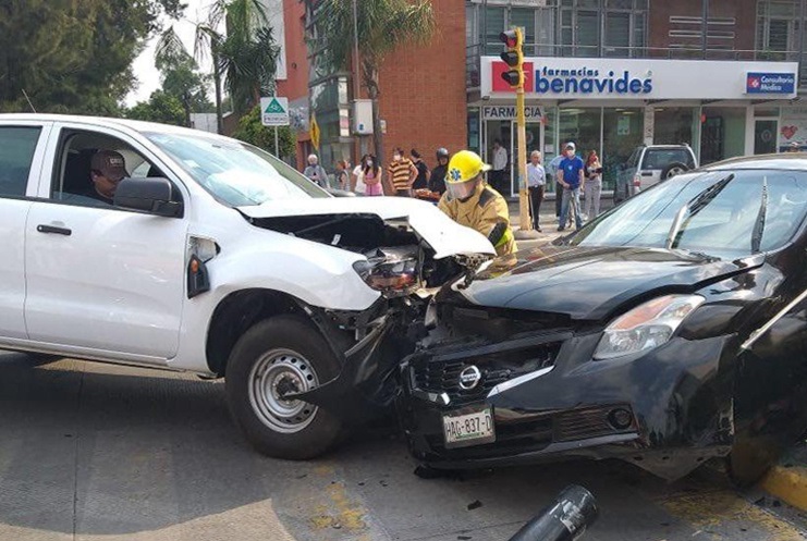 Un vehículo negro con placas de circulación de Guerrero que no debía circular de acuerdo con los lineamientos del Hoy No Circula, se impactó contra otro vehículo en la 9 Sur y la 49 Poniente, en la colonia Prados Agua Azul.