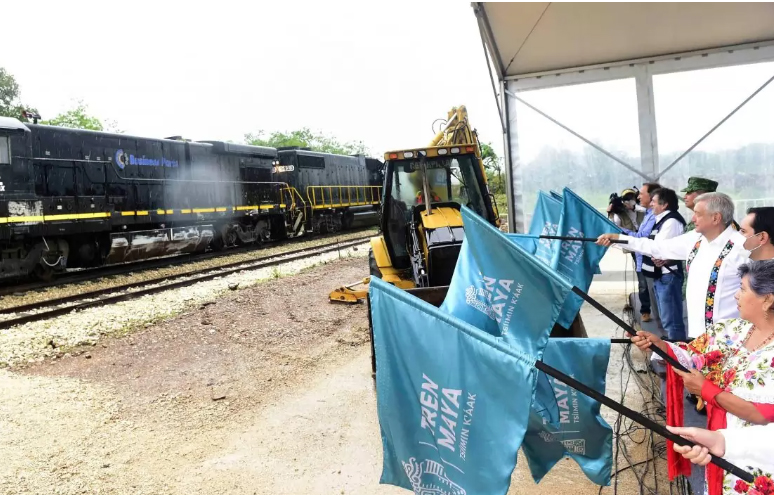 El presidente Andrés Manuel López Obrador dio banderazo este martes, desde Maxcanú, al inicio de las obras del Tramo 3 Calkiní-Izamal del Tren Maya.
