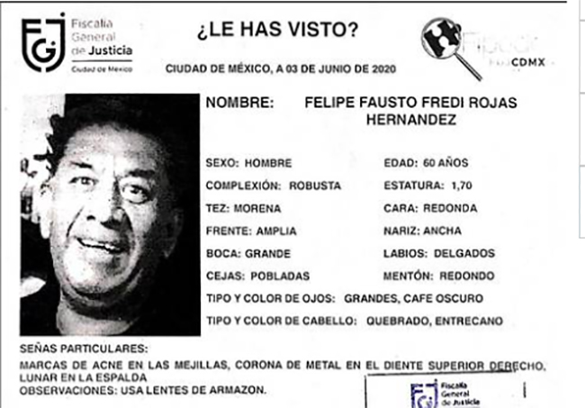 San Martín Texmelucan, Pue.- El pasado 1 de junio Felipe Fausto Fredi Rojas Hernández, de 60 años de edad, realizó un viaje de la delegación Álvaro Obregón, en la Ciudad de México, al municipio de San Martín Texmelucan. Desde esa fecha Felipe no ha regresado a su casa.
