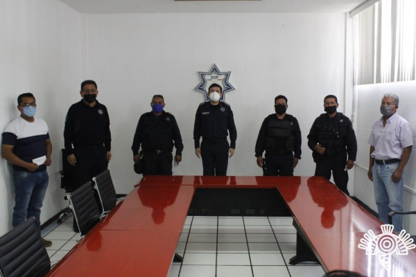 La entrega de los estímulos se hizo en apego a los lineamientos de sana distancia, por lo que solo acudió un pequeño grupo de policías en representación de los más de 100 que recibirán dicha compensación por su desempeño.