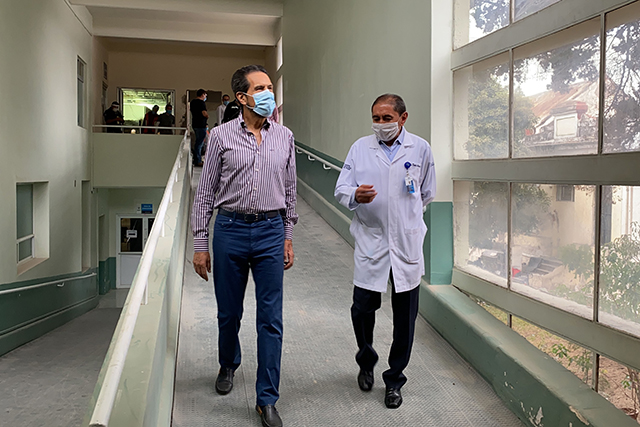 El Rector Alfonso Esparza Ortiz, acompañado del director del HUP, Eulalio Morales Palacios, supervisó la adecuación de la otrora área de quemados del nosocomio, donde se situará el edificio que albergará tres salas, cada una conformada con cuatro camas, equipadas con ventiladores mecánicos y monitores conectados a Internet, dos tomas de oxígeno, aire acondicionado con inyección y extracción regulable, filtrado de aire y muros antibacteriales.