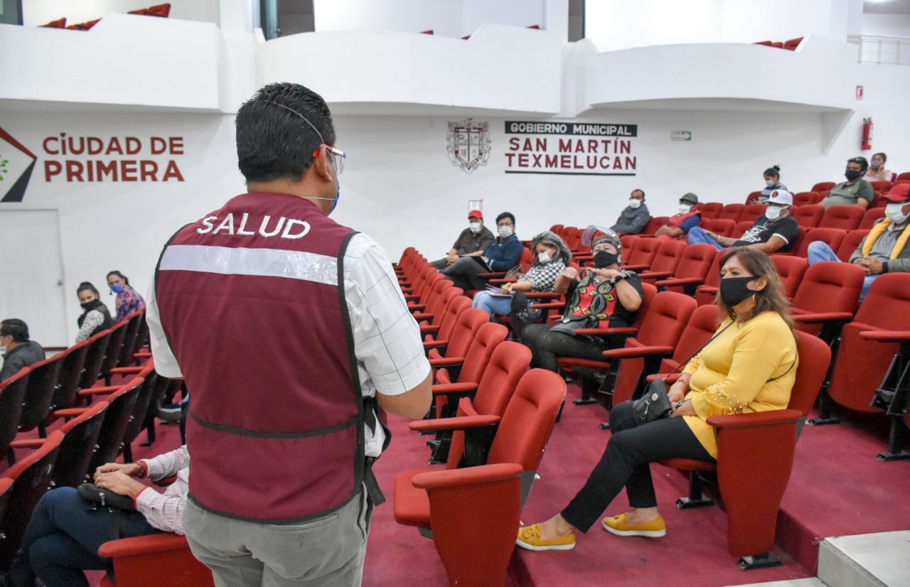 San Martín Texmelucan, Pue. – Para un retorno seguro a las actividades económicas del comercio informal, la Dirección de Salubridad del Gobierno de San Martín Texmelucan, brinda capacitaciones a tianguistas y comerciantes en vía pública, con la finalidad de informar respecto a las medidas de higiene y prevención que tienen que poner en práctica para seguir haciendo frente a la pandemia en la nueva normalidad.