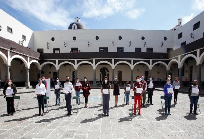 Puebla, Pue.- Cumpliendo con todas las medidas preventivas por la contingencia sanitaria por el COVID-19, el Sistema para el Desarrollo Integral de la Familia del Estado de Puebla (SEDIF), entregó de manera simbólica 13 de 50 reconocimientos al personal que -en febrero pasado- participó en la sesión de inducción del “Programa de Rediseño en el Servicio Público”, impartido por el Centro de Crecimiento Profesional del Instituto de Administración Pública del Estado de Puebla (IAP).