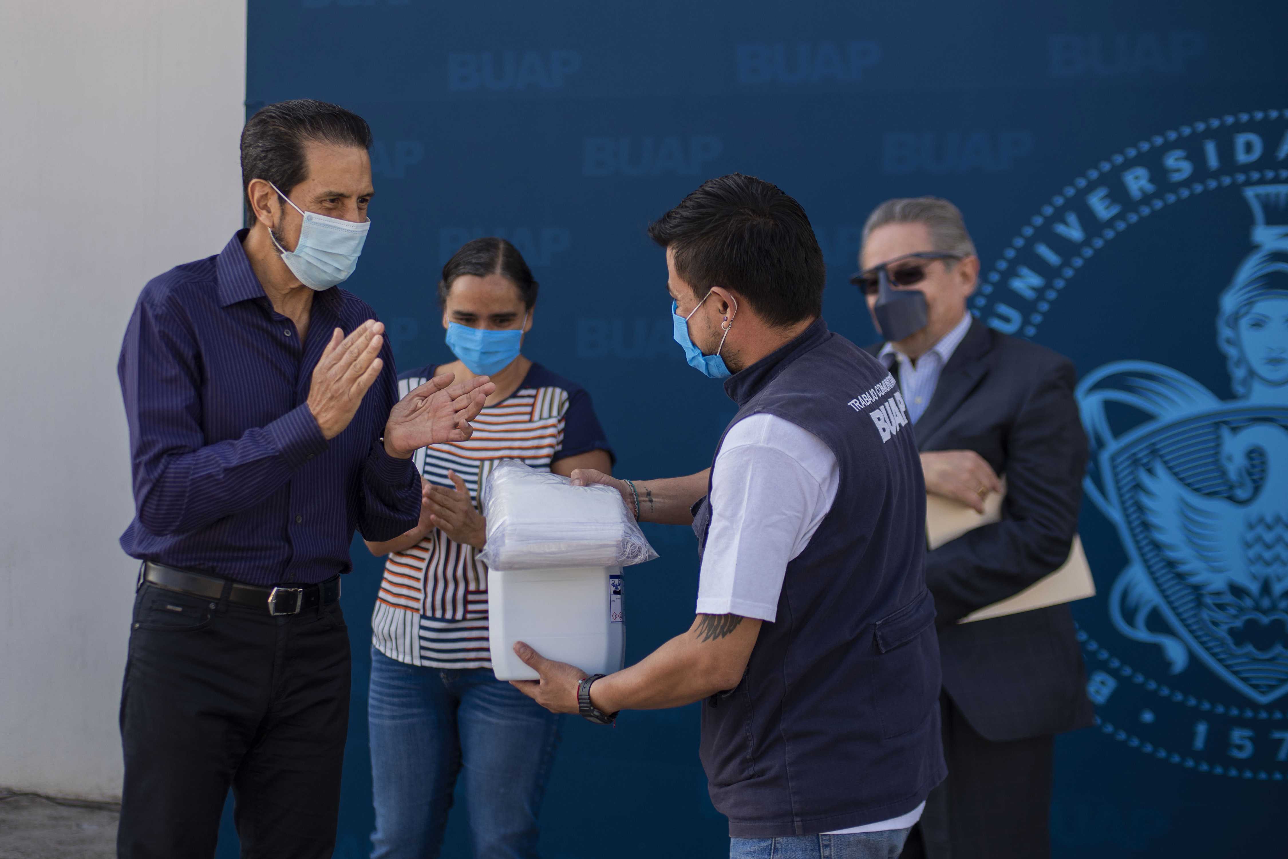 Para salvaguardar la salud de los universitarios que participan en esta campaña, entregó 6 mil cubrebocas tricapa desechables, 400 caretas de acetato, 750 redes para cabello o gorros quirúrgicos, 20 galones de gel antibacterial, cinco galones de desinfectante para superficies y cinco galones para trastes, así como atomizadores.