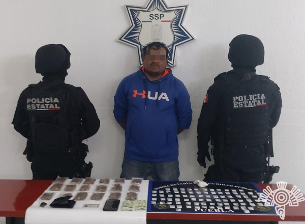 Puebla, PUE.- José Froylan L., presunto operador de los grupos delictivos de “El Pelón” y “La Reina del Sur" y uno de los objetivos identificado en el atlas delictivo del Gobierno del Estado, fue detenido en la colonia Arboledas de Loma Bella en posesión de aparente cristal, cocaína y marihuana.