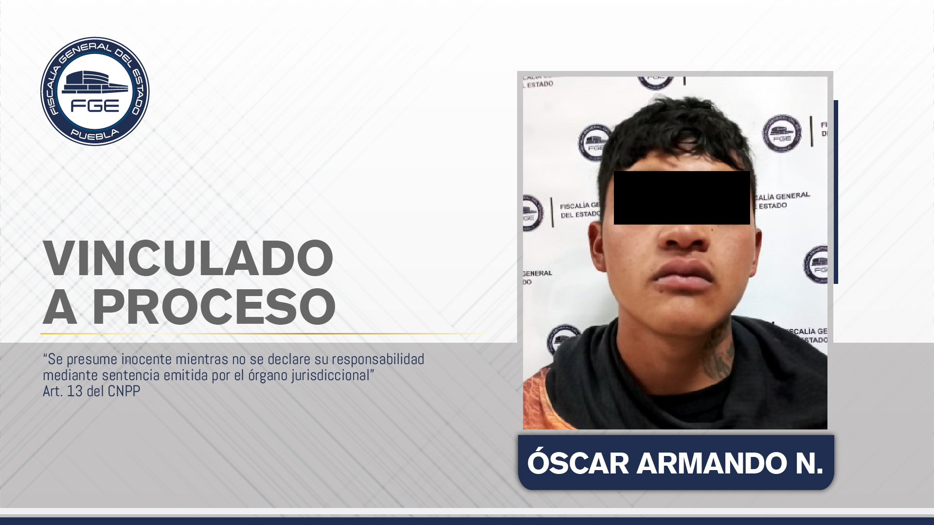Puebla, Pue.- La Fiscalía General del Estado de Puebla obtuvo del Juez de Control, vinculación a proceso contra Óscar Armando N. de 19 años de edad, quien presuntamente privó de la vida a un hombre en la capital poblana.
