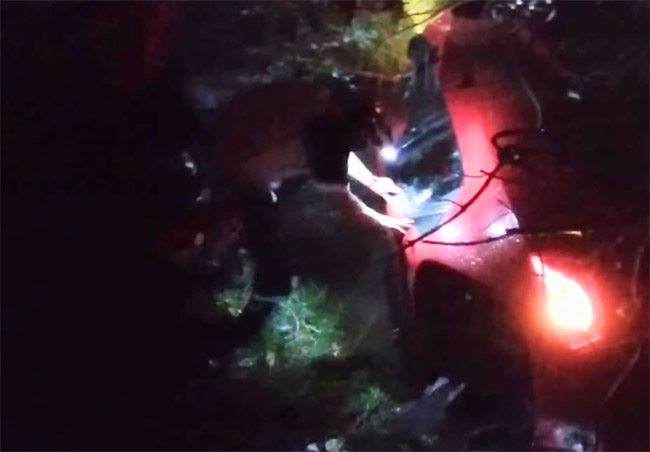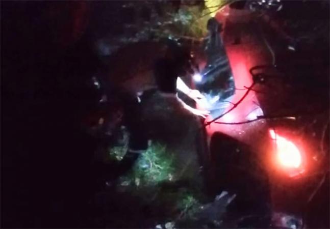 Al fondo de la barranca los elementos de Cruz Roja y de la policía municipal ubicaron en vehículo tipo sedán.