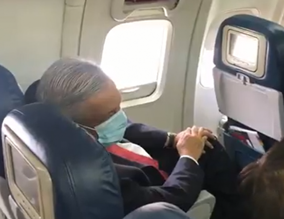 Debido a la visita que realiza el presidente Andrés Manuel López Obrador a Estados Unidos para reunirse con el presidente Donald Trump, por primera vez durante lo que va de la contingencia sanitaria a causa de la pandemia por el coronavirus COVID-19, uso cubrebocas para poder abordar el avión.
