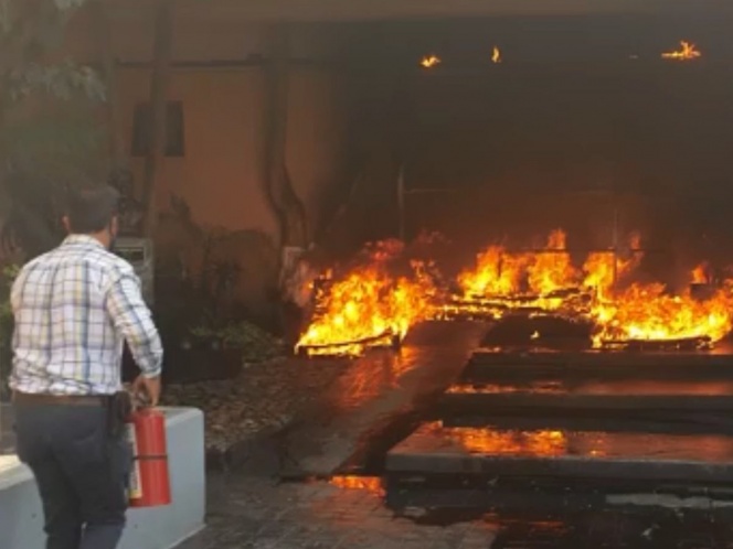 Posteriormente pusieron colchones y colchonetas en las ventanas, rociados de gasolina y les prendieron fuego, también lanzaron petardos en contra de las oficinas y lograron que algunas de las oficinas que están en la orilla se incendiaran. La mayoría de los jóvenes llevaban mochilas con bombas molotov en su interior.