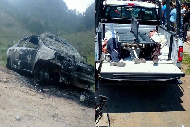 Los inconformes además le prendieron fuego al vehículo con placas de Puebla y propiedad de una de las víctimas, en el que viajaban los dos hombres