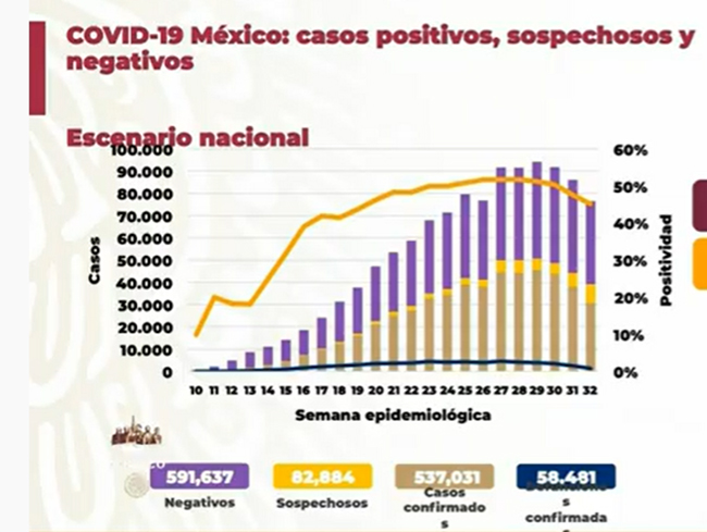 México llega a 58 mil muertos y 537 mil positivos de Covid