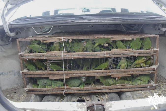 Sobre el viaducto elevado del segundo piso de la autopista México – Puebla, los uniformados marcaron el alto a un Nissan Tsuru, debido detectaron que en la parte trasera del automóvil transportaban rejas con diferentes tipos de aves.