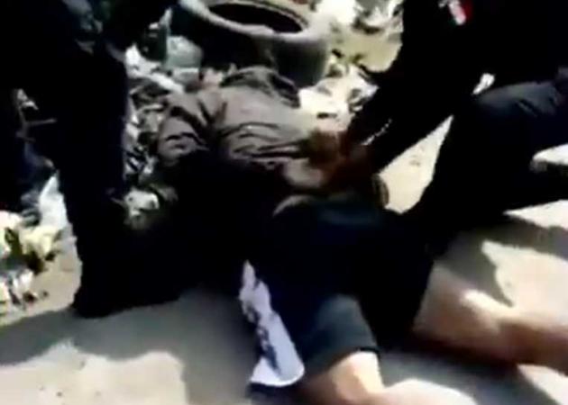 Un video difundido en redes sociales muestra al sujeto con el rostro inflamado por los golpes, viste sudadera y pantalones cortos en color negro.